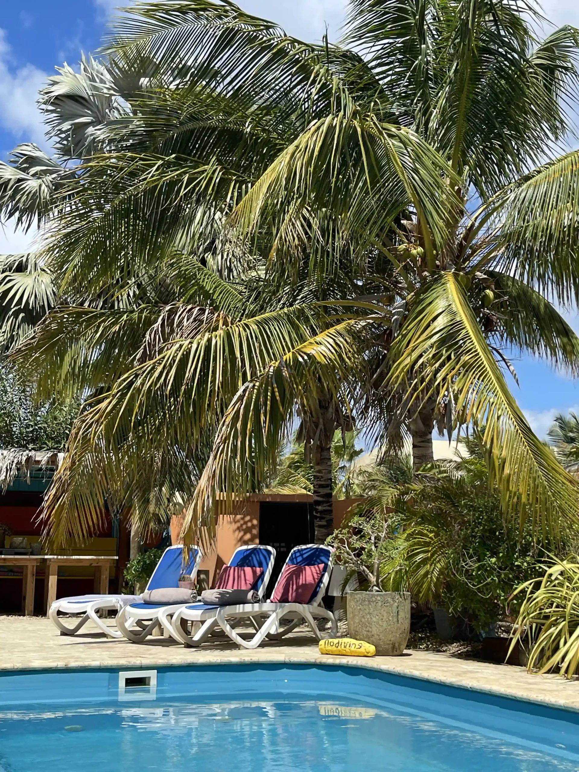 After a full day of adventures, you can relax & have a nice cold drink in the tropical garden with pool, and the beach is only 150 meters away!